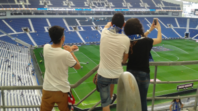 Ao entrar no Estádio, às 18h00, tudo parece gigantesco… Depois de muitas fotos, palmas e gritos de alegria entram as equipas em campo… Delírio da multidão.