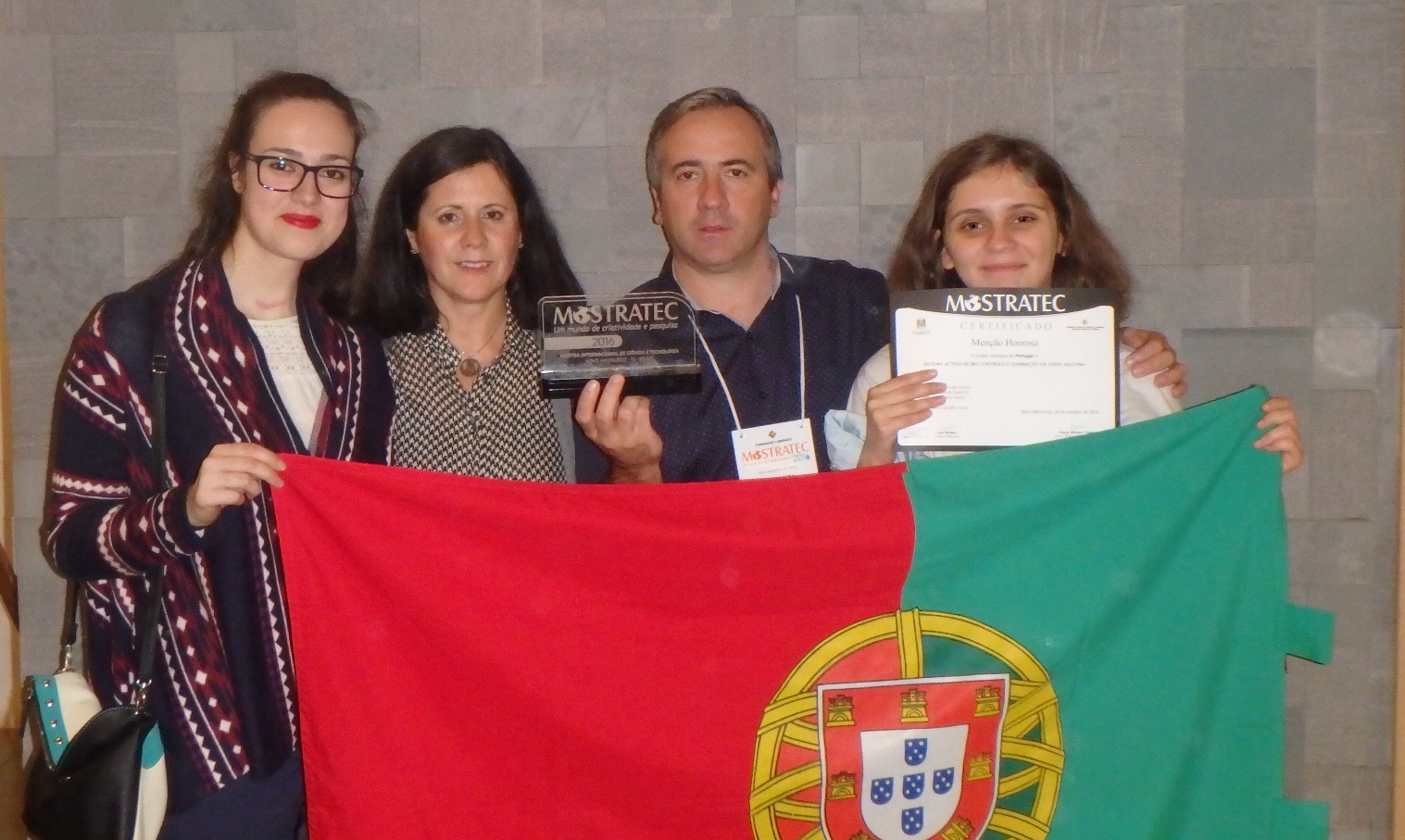 O projeto ‘Sistema Activo de Bio Controlo e Eliminação da Vespa Velutina’, desenvolvido por Francisca Ribeiro da Costa e Milena Pereira, ambas alunas do Agrupamento de Escolas D. Maria II, de Braga, foi distinguido com uma menção honrosa durante a Mostratec - Mostra Internacional de Ciência e Tecnologia que se realizou de 24 até dia 28 de Outubro, em Novo Hamburgo, no Brasil. A MOSTRATEC é a maior Feira de Ciências da América Latina, que este ano reuniu cerca de 900 projetos dos quais 650 referentes ao ensino básico e secundário.